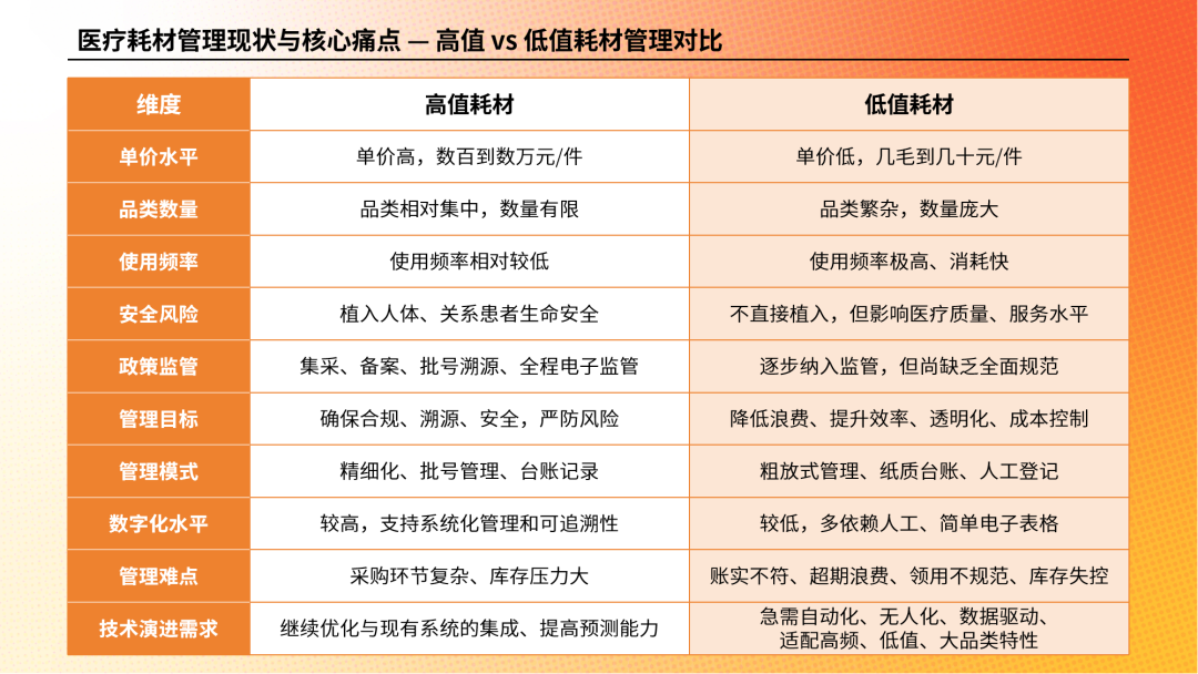 随着医保支付方式改革、智慧医院建设标准不断推高管理要求,低值耗材管理已经从“可忽略”变成了“必答题”。这不仅关乎成本控制,更关乎医院运营效率、医疗安全和管理现代化水平。