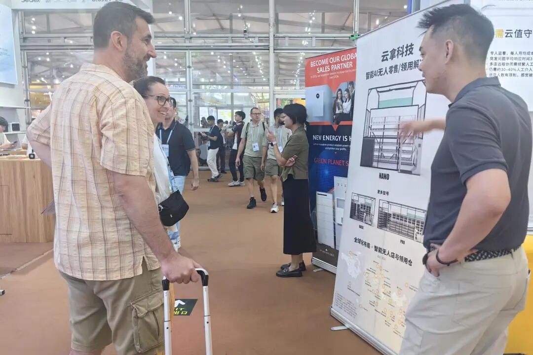 来自东南亚、中东、欧洲、拉美、澳洲等多个国家和地区的采购商,对云拿AI无人零售解决方案表现出极高兴趣。尤其是东南亚客户,更是频频现场洽谈,希望尽快将这种“无人便利店”模式带到本地市场;