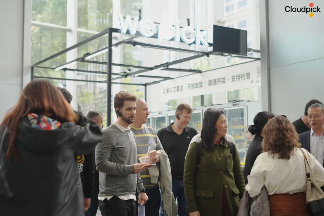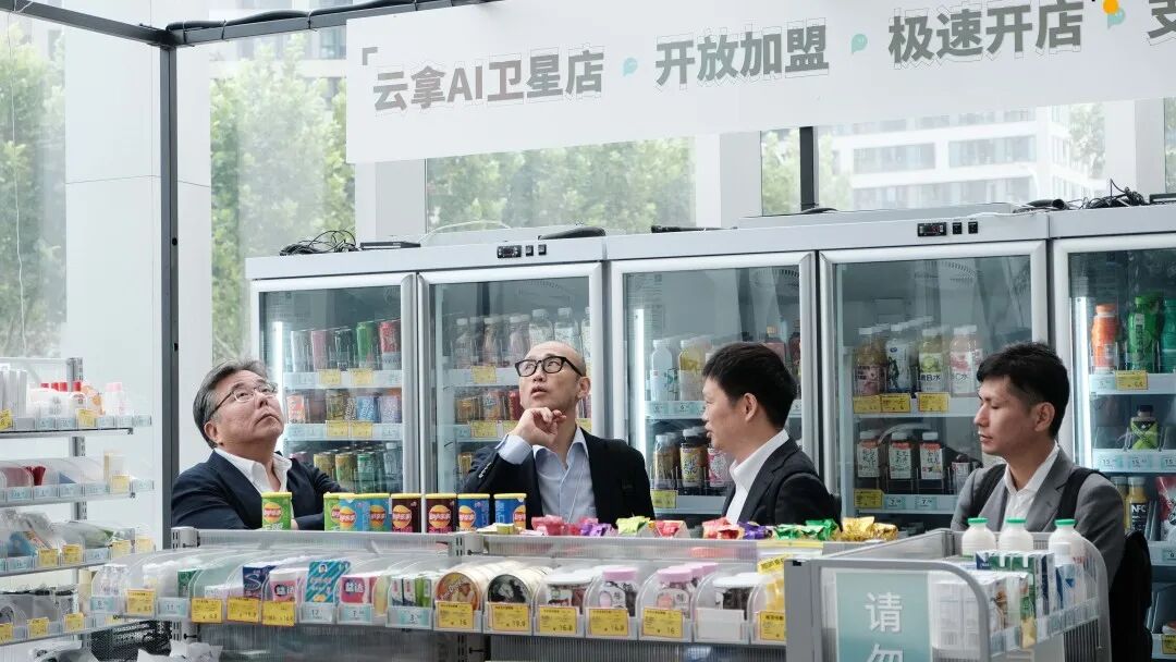 代表团成员不仅参观了云拿总部的展厅与运营中控系统,还亲身体验了位于总部附近、真实运营中的AI无人便利店,从“扫码进店”到“拿了就走”的全过程,让他们对云拿技术的稳定性、成熟度和商业落地能力有了更直观的感受。