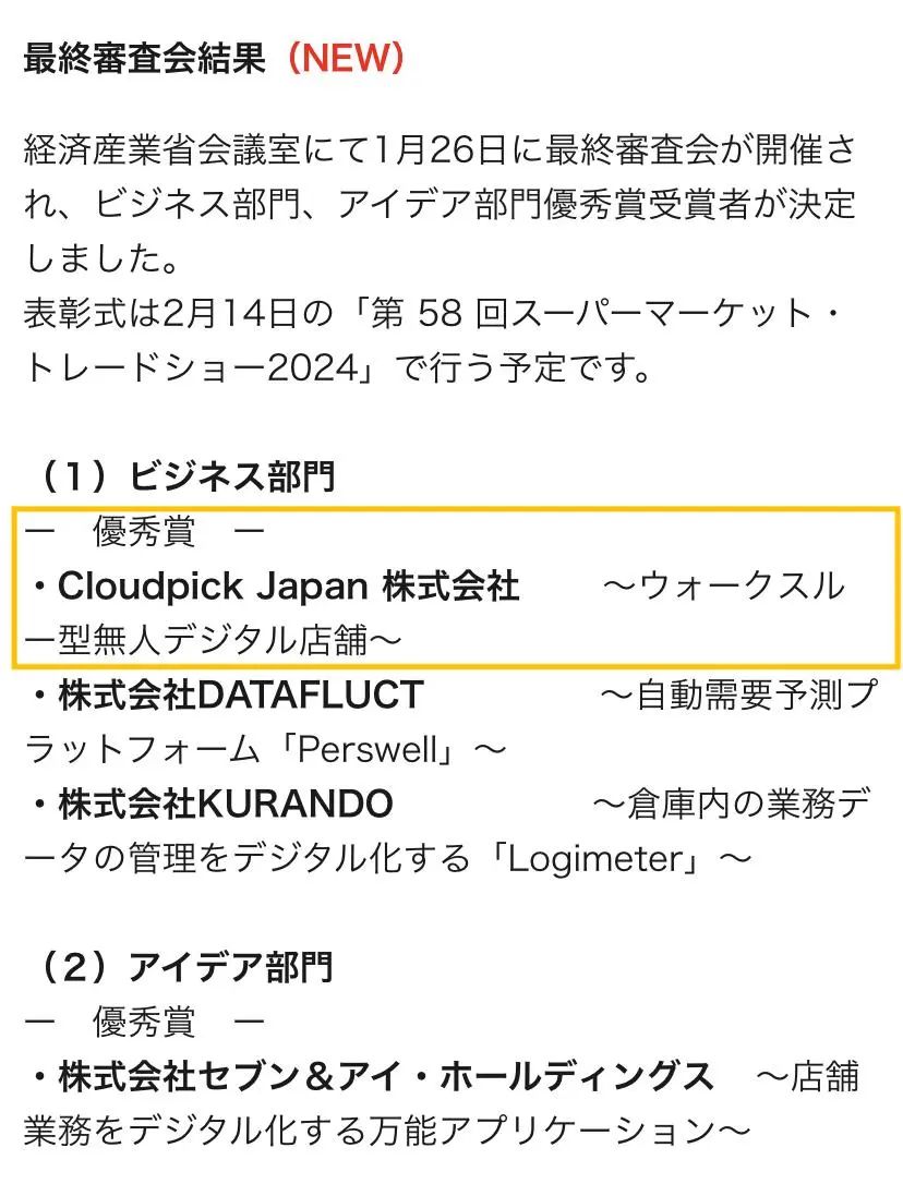 云拿科技(Cloudpick Japan 株式会社),一家致力于AI无人零售解决方案的前沿企业,近日在日本经济产业省举办的第二届SUPER-DX contest决赛中脱颖而出,赢得了优胜奖,这是一项仅设立一种奖项的赛事。这不仅是对云拿科技技术创新能力的认可,更是标志着中国企业的技术出海策略取得了显著的成功。