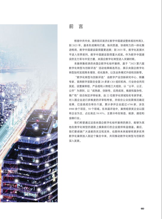 本案例集收录的央国企数字化标杆案例,基于“2023第六届数字化转型与创新评选”活动结果精选而出,展示央国企数字化转型如何实现降本增效、优化服务,以及业务模式升级和创新等。